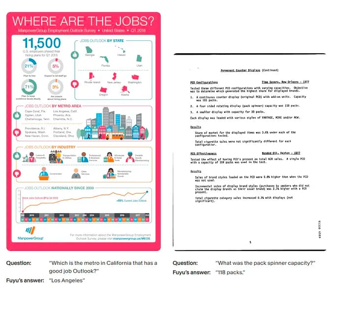 Fuyu’s competence extends to deciphering a wide range of documents, whether they involve intricate infographics or aging PDFs:
